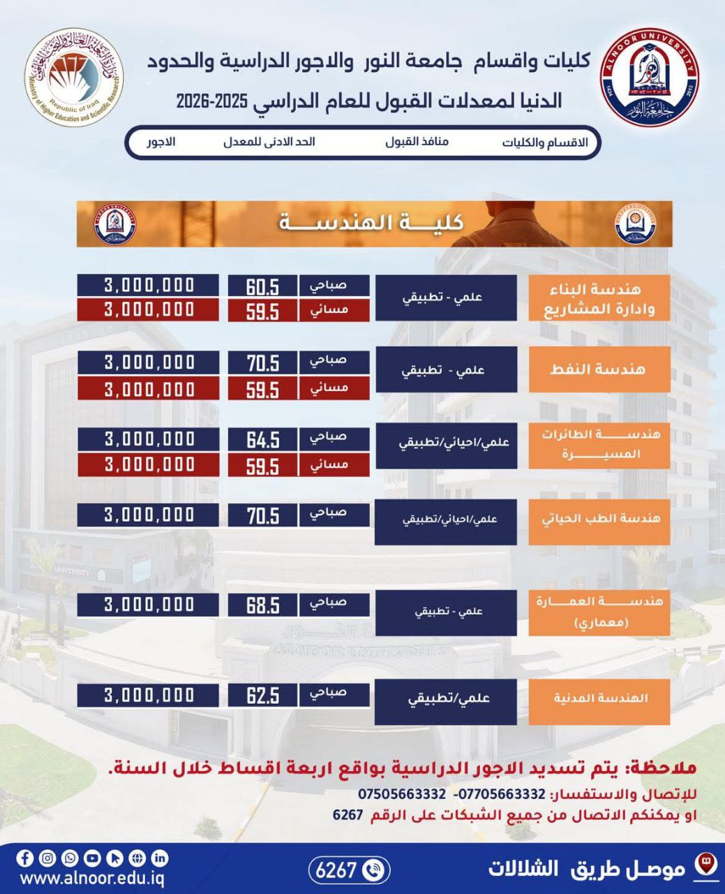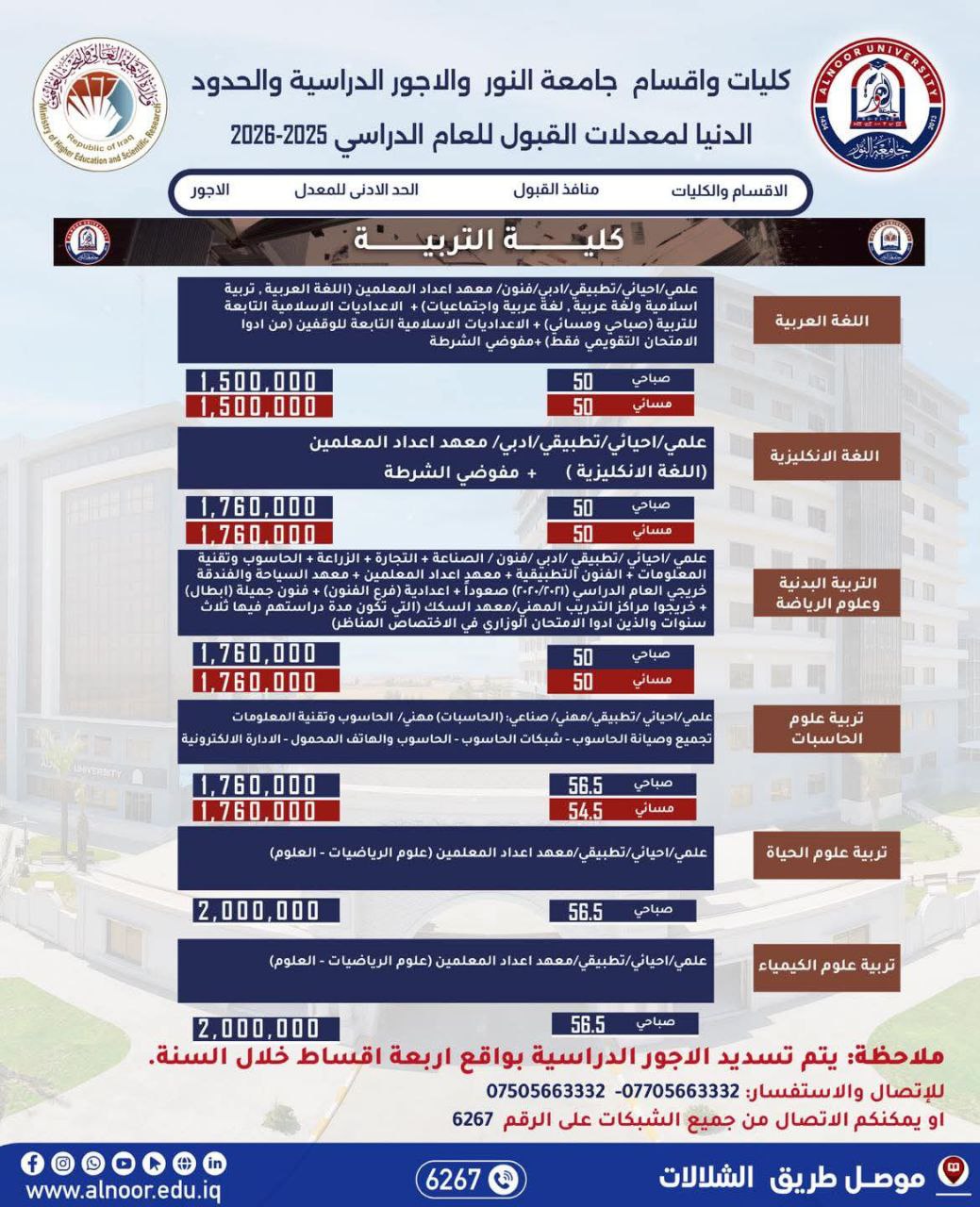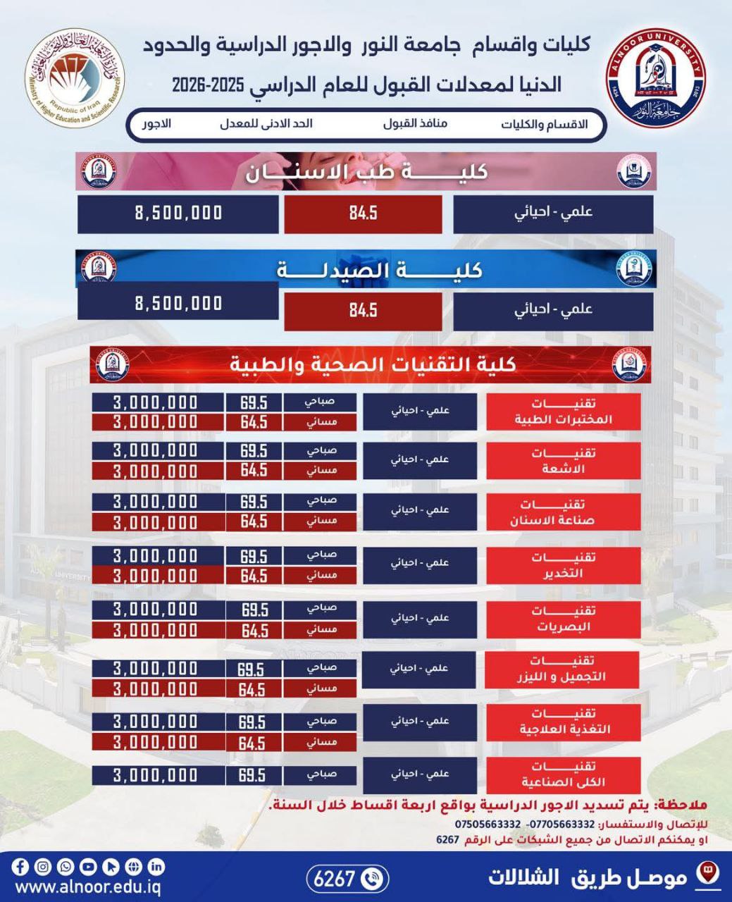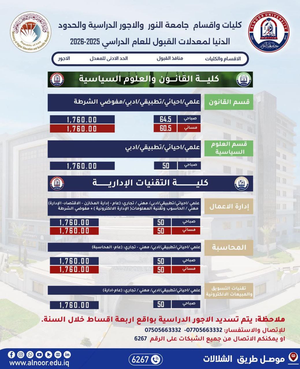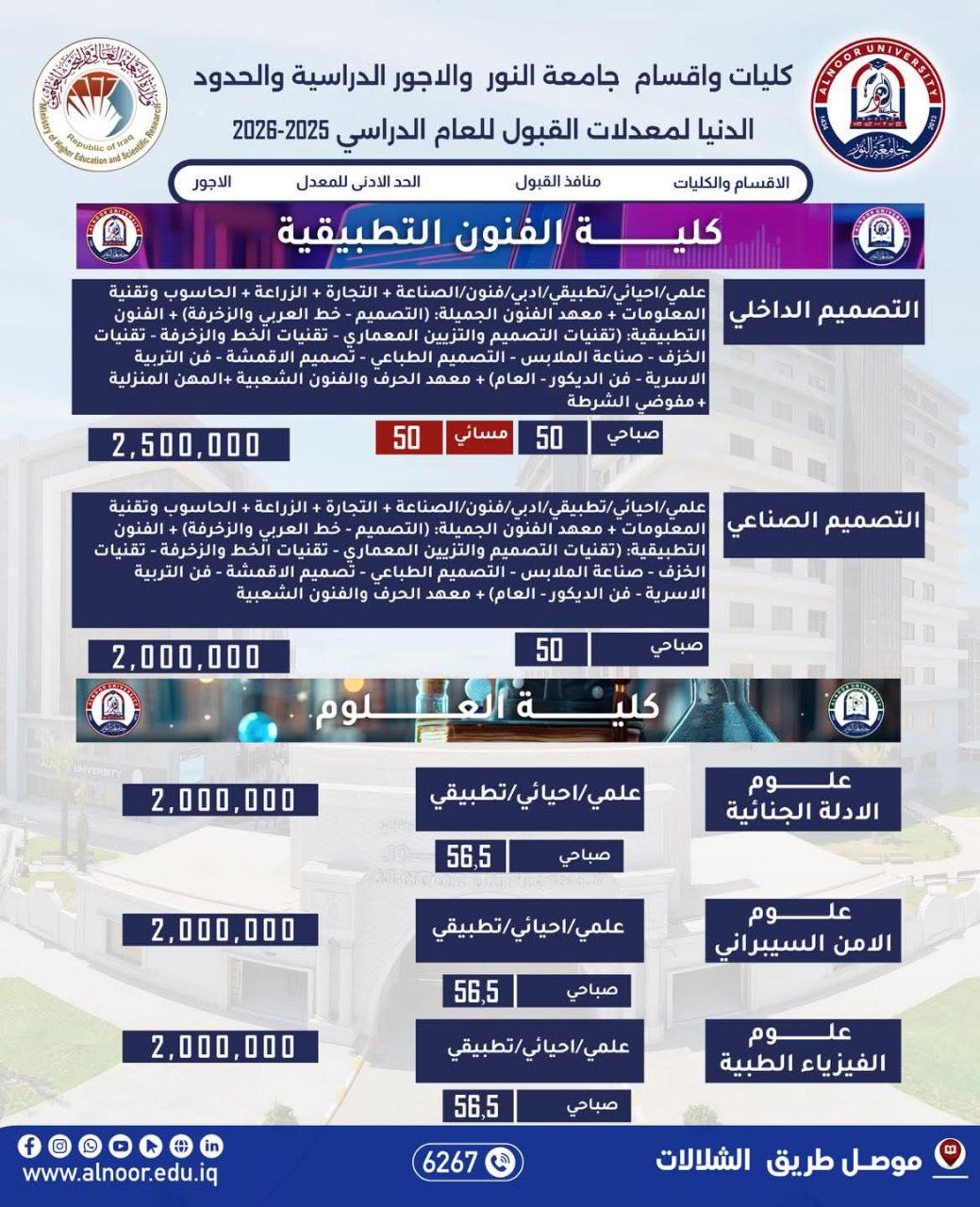 يحق للطالب المقبول في الجامعات والكليات الحكومية التقديم للقبول في الجامعات والكليات الأهلية على وفق الاستمارة الالكترونية ومبدأ المفاضلة على وفق مدخلات وشروط التقديم للعام    ( 2025 / 2026 ).