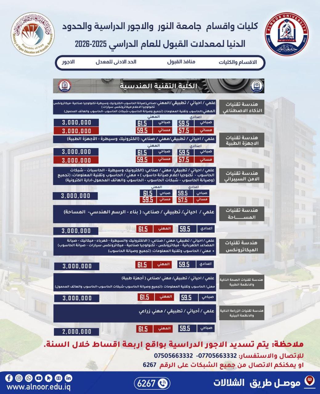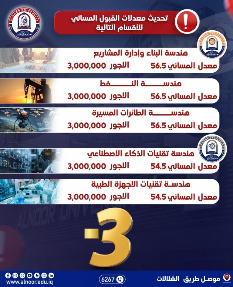التخصصات الدراسية المتاحة في جامعة النور للعام الدراسي 2025 -2026
